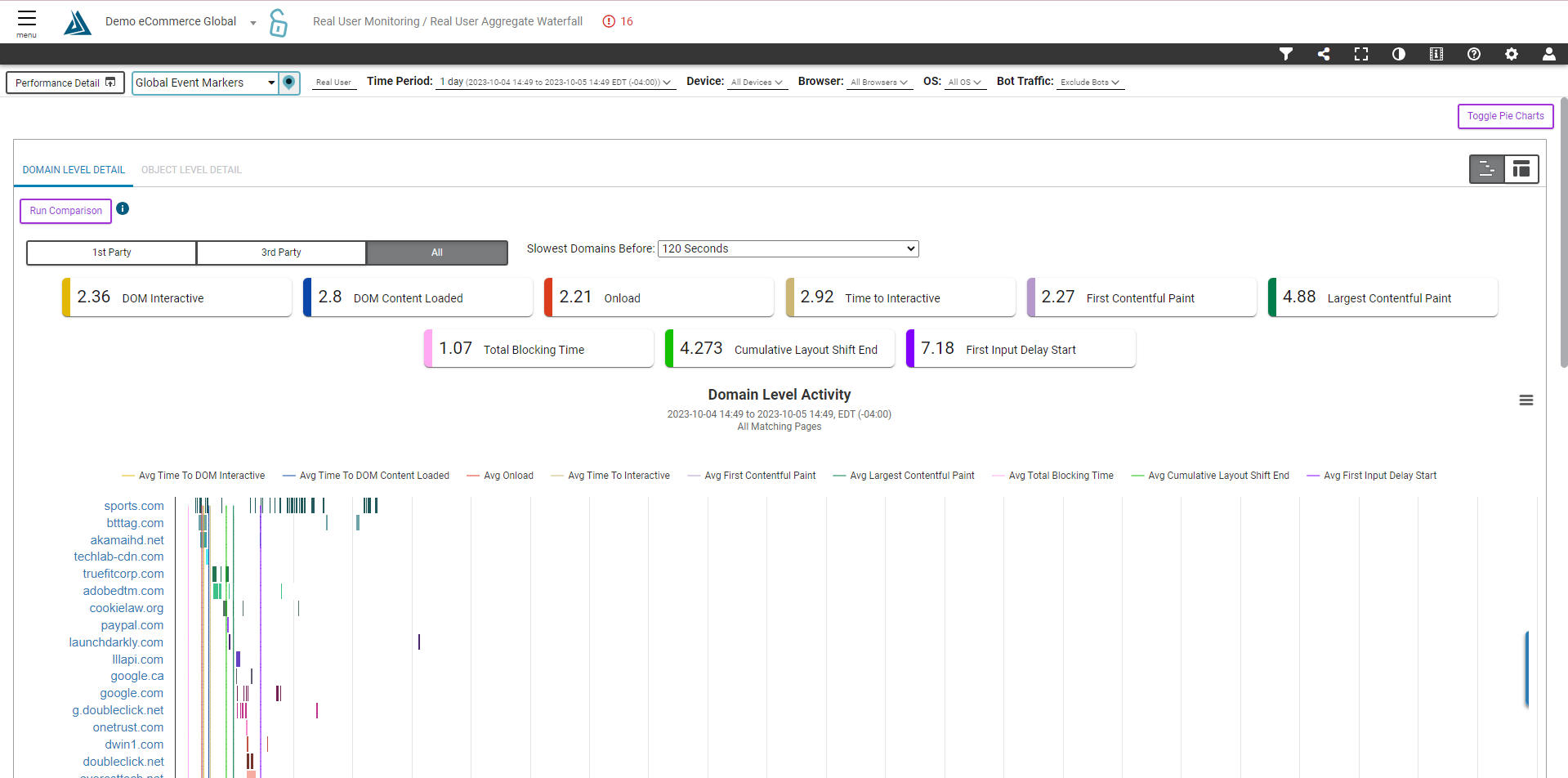 While the Performance Detail Page can show us the object and domain level detail for a single page measurement, the Aggregate Waterfall Page shows us this information aggregated over time.