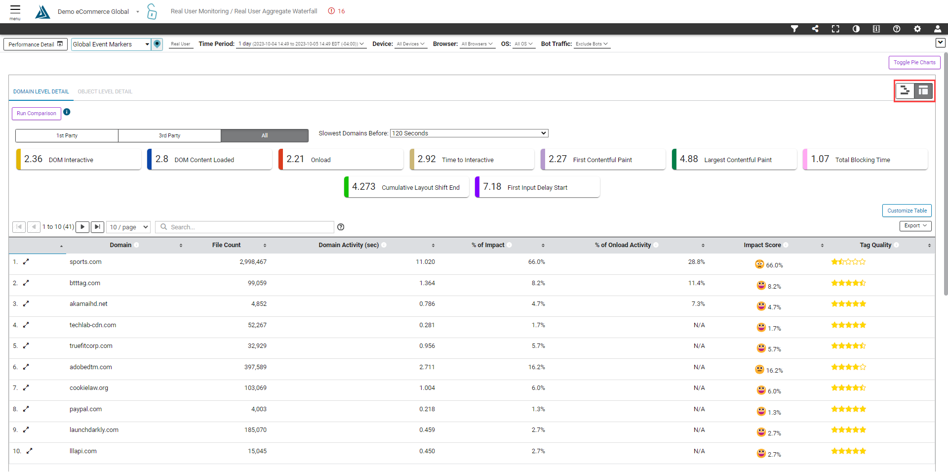 In the table view you will see % Impact, % of Onload Activity, Impact Score, and Tag Quality.