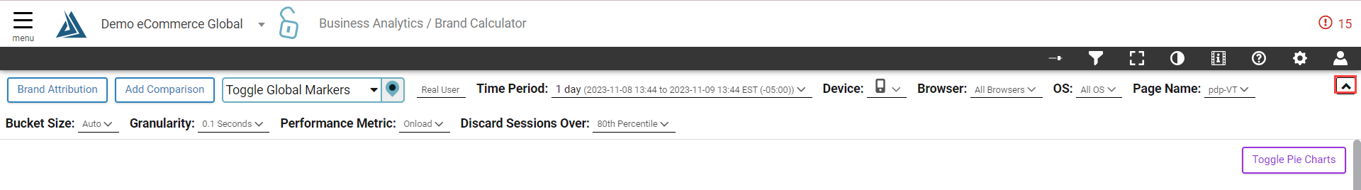 Click the filters icon on the top right of your screen and select any filters you would like to apply (e.g. Traffic Segment, Page Group, Page Name, Device, etc.).